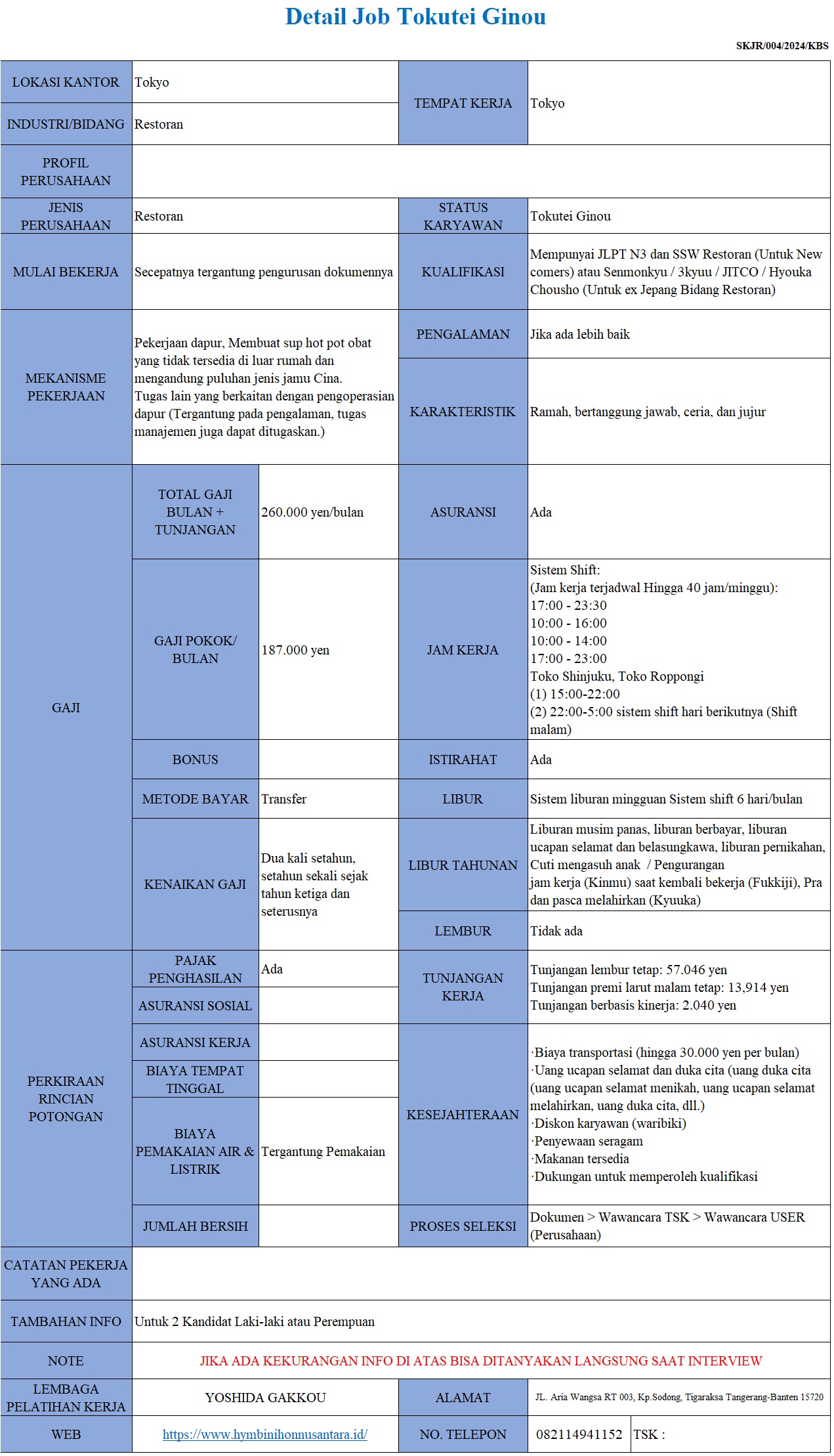 Status Kerja : Karyawan Kontrak Tokutei Ginou