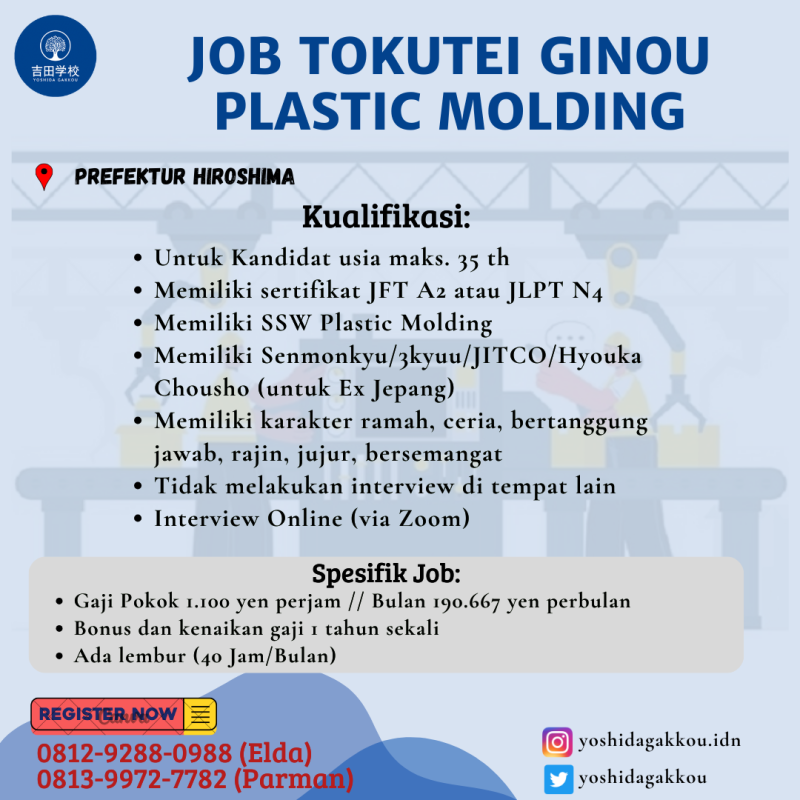 2. Memiliki Sertifikat Minimal JLPT N4 / JFT Basic A2 dan Memiliki SSW Plastic Molding